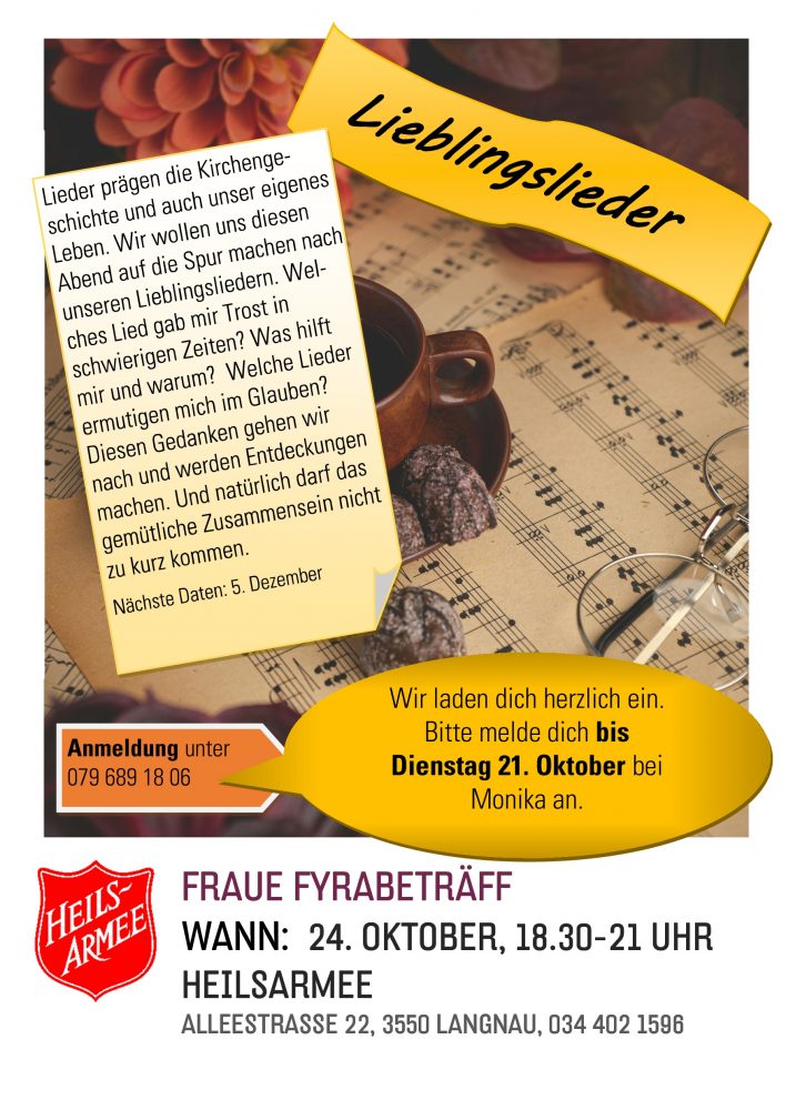 Während des Langnouer Märit bieten wir jeweils Von 11.00 Uhr bis 14.30 Uhr in unserem „Kaffistübli“ Kaffee und Kuchen an. Über Mittag gibt es eine feine Suppe. Jeder ist herzlich eingeladen.